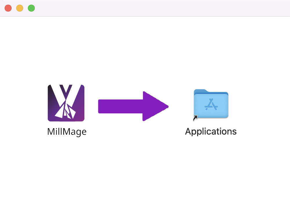 Installation works the same way as most macOS software. After downloading the DMG file, open the file and drag MillMage into your Applications folder.