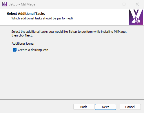 Installation works the same way as most Windows software. Start the installer by double-clicking the file you downloaded from the MillMage website. Windows may ask if you trust us first.