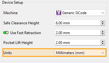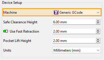 Select your desired CNC machine from the list of added Devices in the Machine dropdown.