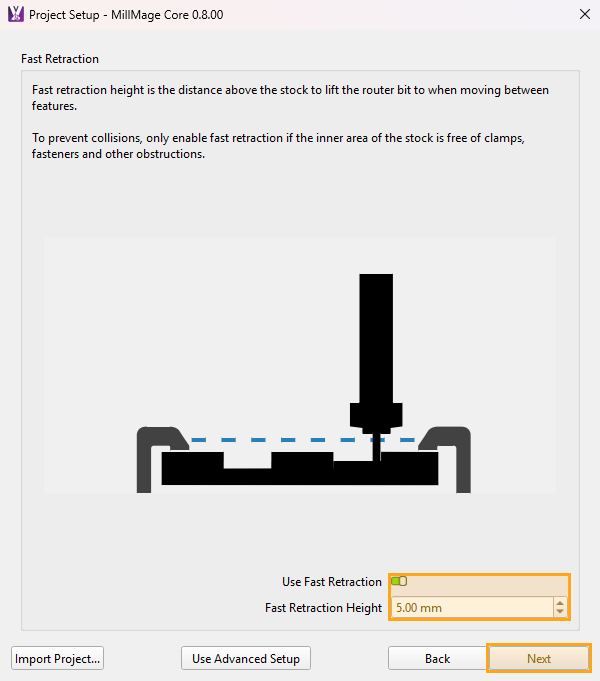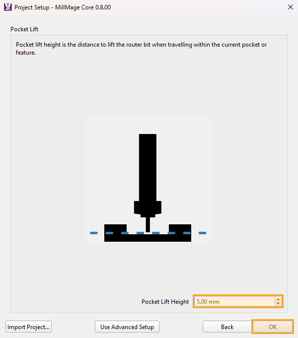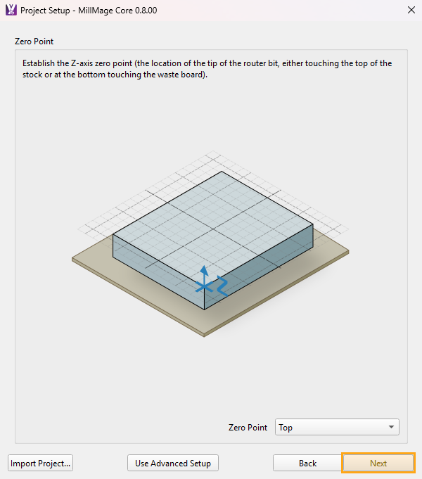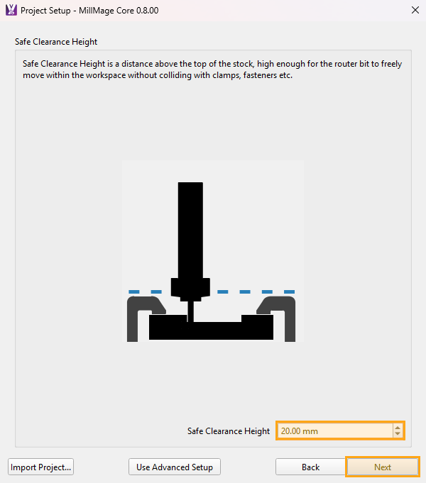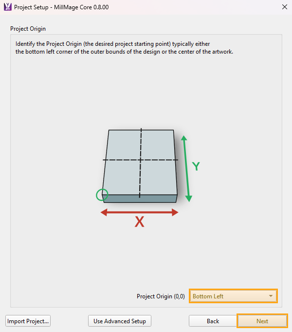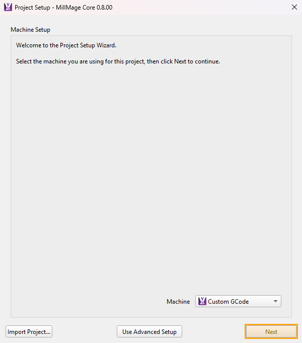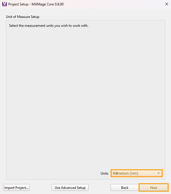The Project Setup window will be presented on every relaunch of MillMage in the last mode you used — either Advanced or Beginner Setup.