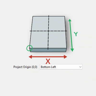 The Project Origin corresponds to the physical X (left/right) and Y (front/back) Axes points where you will Zero the tip of the router tool.