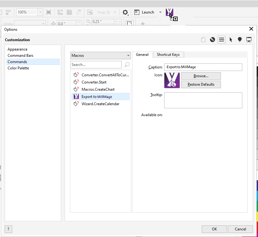 ExportToMillMage.gmsfrom CorelDRAW's GMS folder (located earlier in this guide).