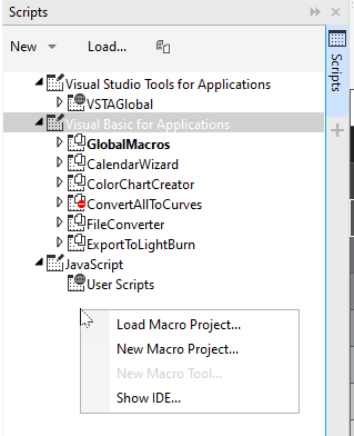 A. Right-click on the background of the Script Manager window, select Load Macro Project, and select