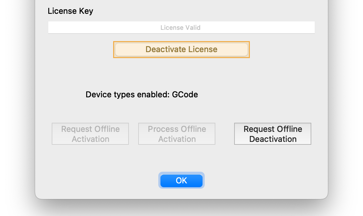 If you see an "Invalid license id..." message instead, you'll need to repeat the process. Take care to enter your exact license — including hyphens — into MillMage and the field in the Offline Activation window. Copying and pasting the key directly from your original order email is the best way to ensure accuracy.
