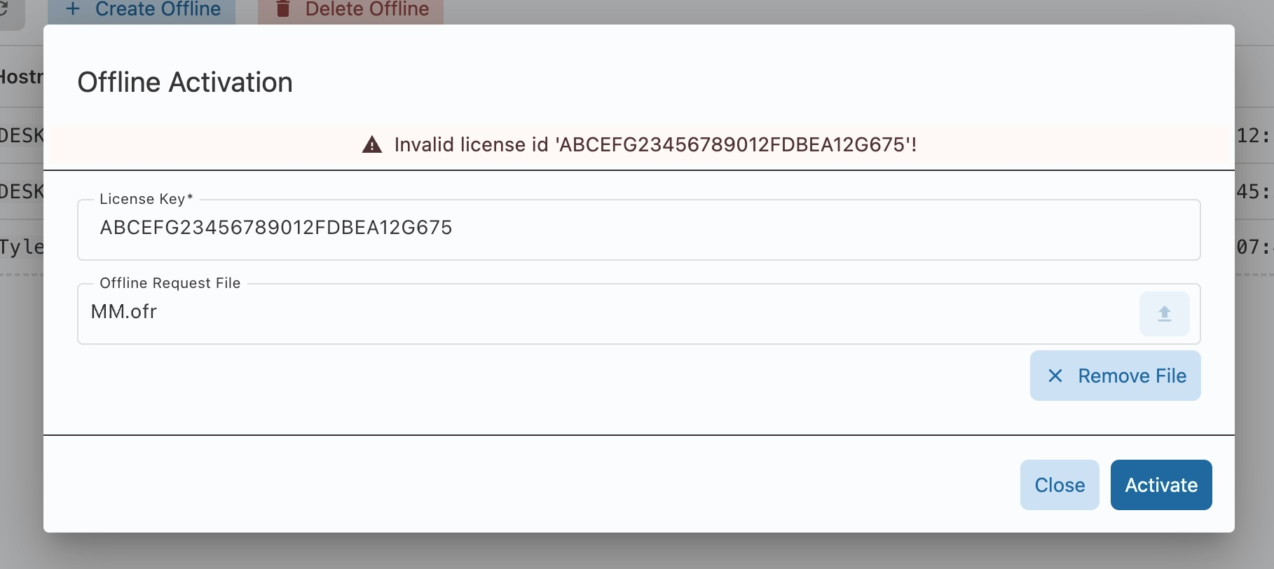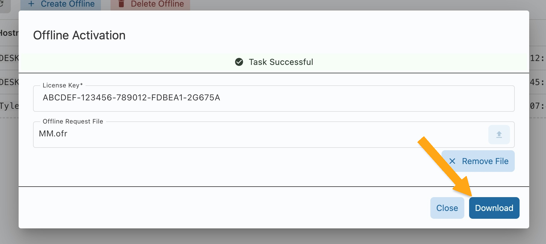 .ofrextension that contains the machine fingerprint as an offline request. Save and copy that file to a USB flash drive and bring it to a machine with a network connection. -