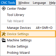Open the Custom GCode window in the Device Settings window to define the parameters of your tool length probe by selecting either: