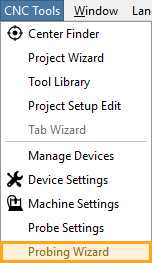 Open the Probing Wizard by selecting CNC Tools → Probing Wizard, or by clicking the Probing button in the Move window.
