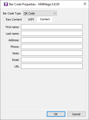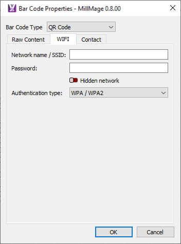 For QR Codes, you can choose to enter data as Raw Content, WIFI credentials, or Contact information.
