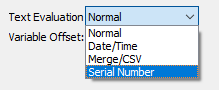 The Text Evaluation dropdown menu allows you to select a Variable Text format that will substitute different output in place of specially formatted codes.