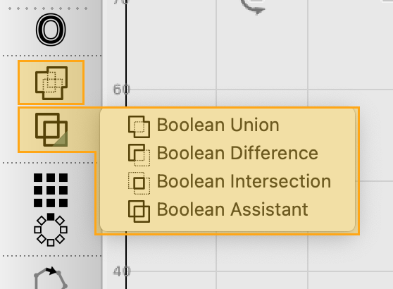 The Boolean Assistant is a dialog window that shows a preview of what each of the Boolean operations will do to your selected shapes, and gives you the option to click OK to confirm the change, or Cancel to discard it and close the Boolean Assistant.