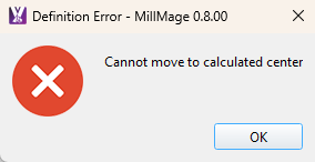 MillMage can't calculate center, or it would be outside your CNC machine's work area.