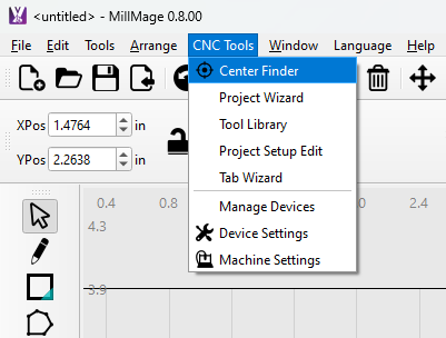 The Center Finder is a tool for finding the center of circular stock, as well as defining that stock in your MillMage Workspace.