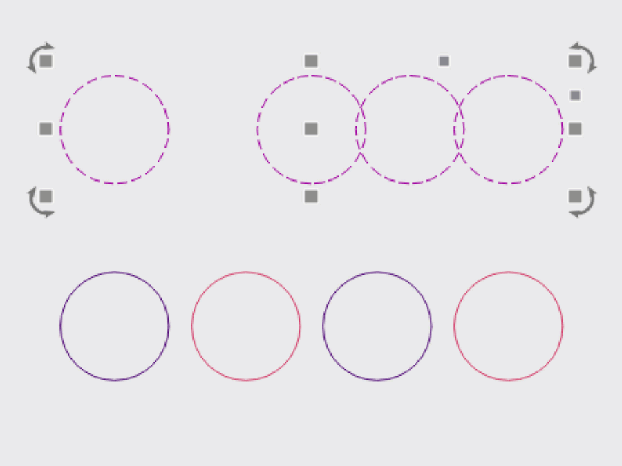 The Move Together tools move selected objects so that they are evenly distributed, and their edges are abutting along horizontal or vertical planes.