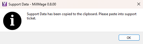 Create a new email to Support@MillMageSoftware.com and press Ctrl / Cmd+V to paste the data into the body of the email.