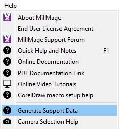 Generate Support Data creates a block of encoded characters that MillMage Support staff can use to view information on your MillMage Preferences, Device Settings, and other important installation information.