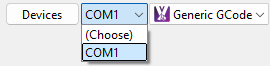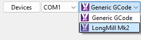 If you've created multiple device profiles for multiple CNC machines, select the CNC machine you are currently working with the dropdown menu.