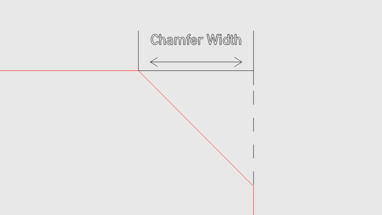 Specifies the width of the chamfered edge. MillMage will automatically determine the correct depth to plunge your tool to achieve this width.