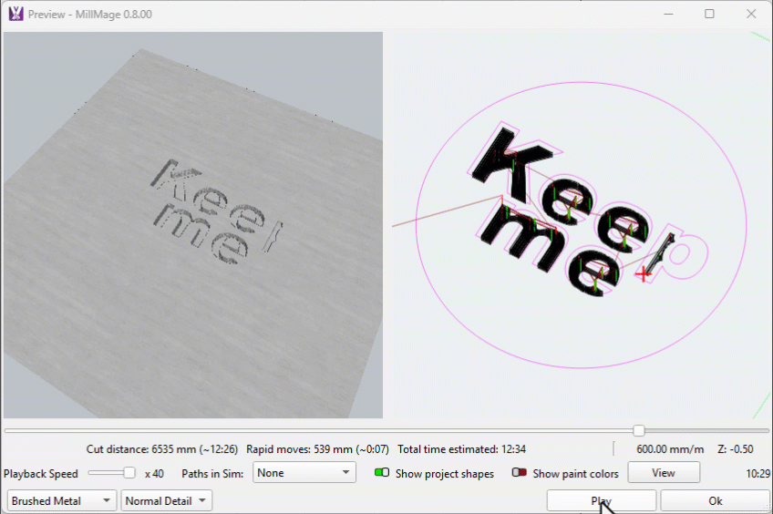 The Preview window is an accurate representation of what MillMage will send to your machine.
