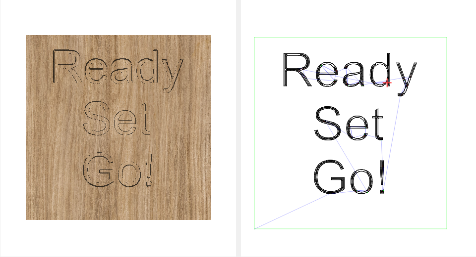 The right side of the Preview window shows a representation of your project as it will be carved in your workpiece, while the left side shows a wireframe representation of toolpaths only.