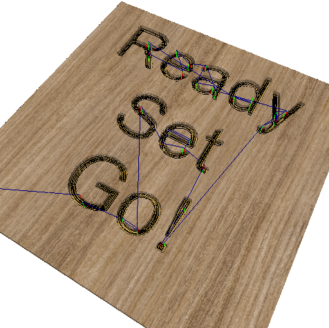 - Blue lines: X and Y Axis travel moves between cutting, plunging, and retraction moves