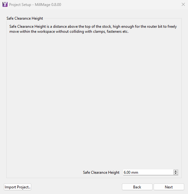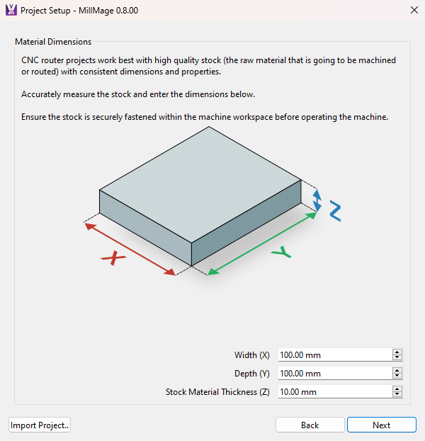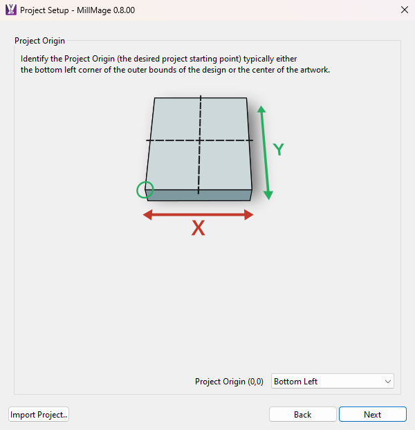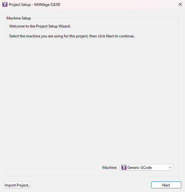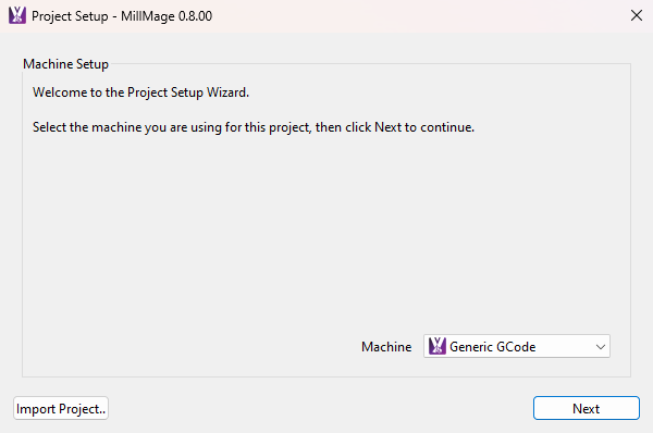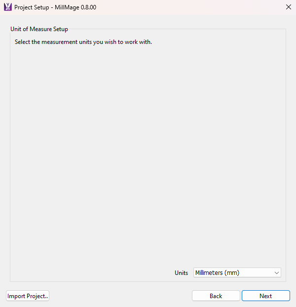 Optionally select the Import Project... button to load a previously saved MillMage .mage or LightBurn .lbrn2 project file.