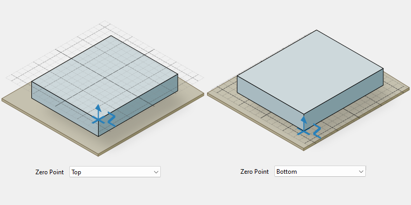 The Workpiece Zero Point is the point along the up and down Z Axis where the tip of the router bit is physically touching either the top of the material stock, or at the bottom, touching the waste board surface.