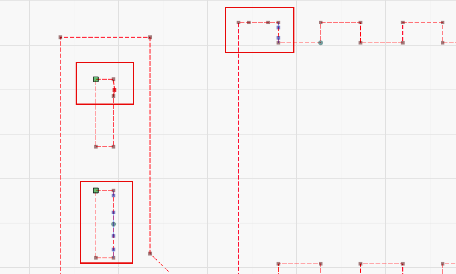 The tool requires well-formed shapes as an input. If the shape has extra nodes, or if any of the lines are technically curves (even if they're straight), it will interfere with slot/tab detection. The highlighted sections in the image below show examples of problematic shapes. Use Optimize Selected Shapes to try to repair these shapes.