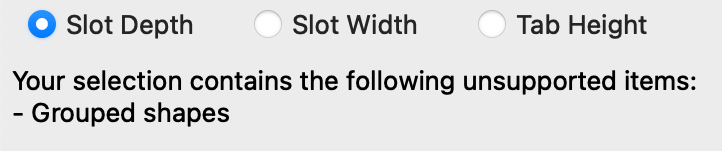 - The tool searches Ungrouped objects. Exit the Resize Slots dialog and Ungroup your objects if you see a warning message indicating that there are Grouped objects in your selection.