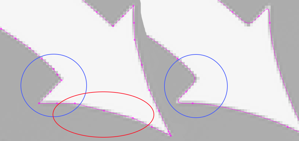 Increase Smoothness to turn more line segments of the resulting vector into curves. Set it to 0.0 to create only lines (left), and 1.33 to create only curves (right).