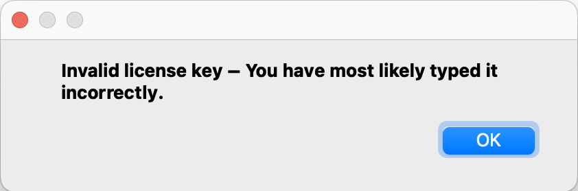Your license key has been entered into MillMage incorrectly. To avoid typos when entering your key into MillMage, we strongly recommend copying and pasting the key directly from your original order email.