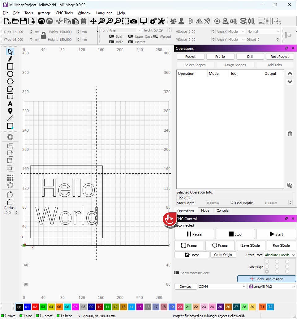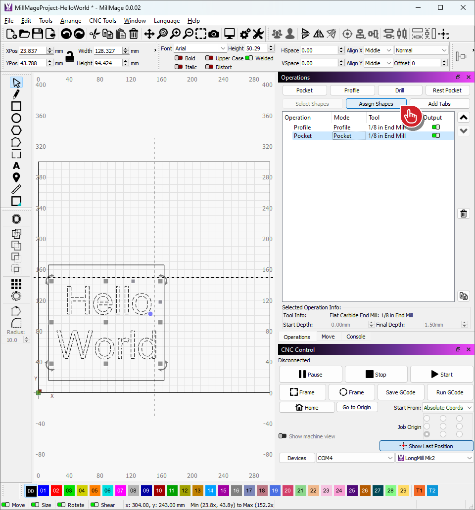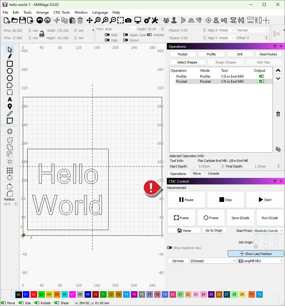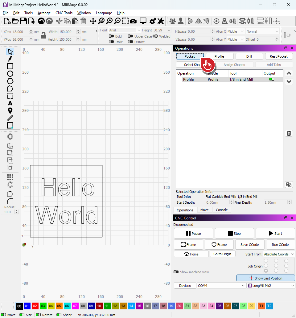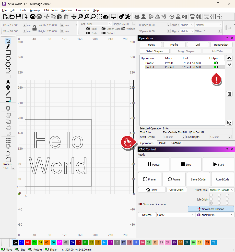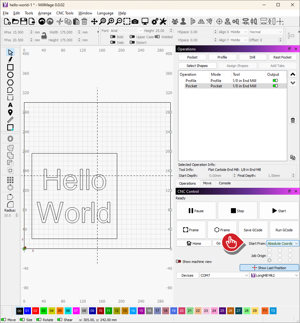 Create your very first CNC cuts in MillMage using any piece of compatible material. This step-by-step tutorial will walk you through making your first cuts with a CNC machine.