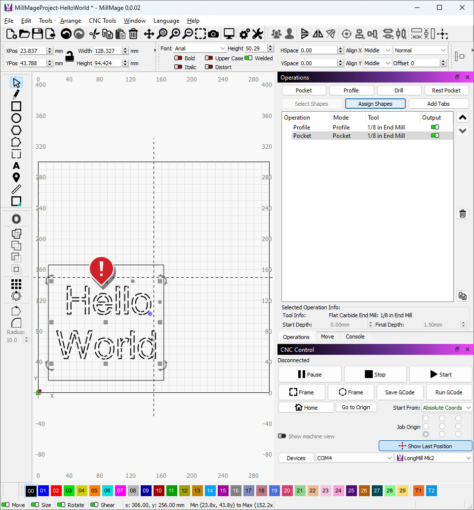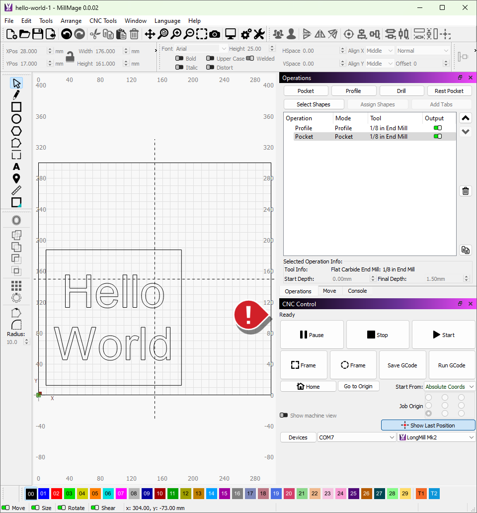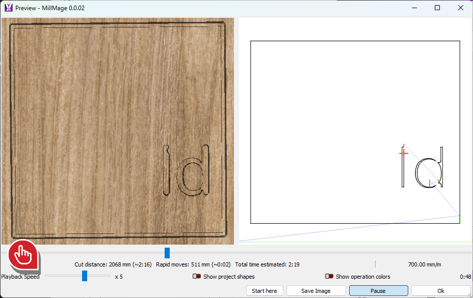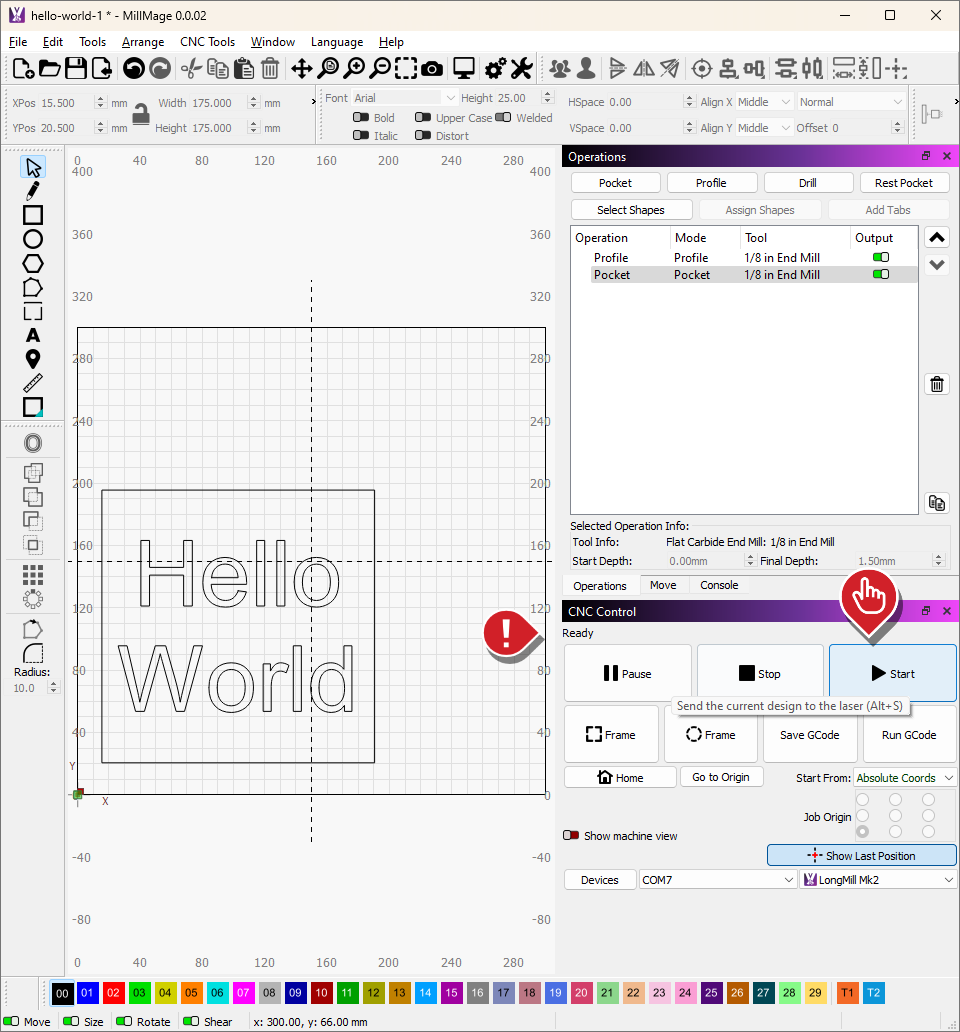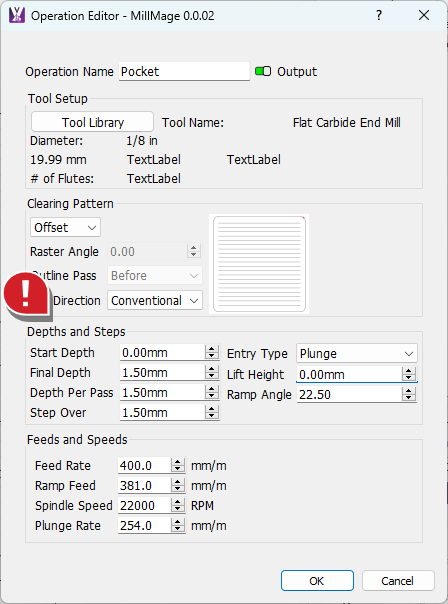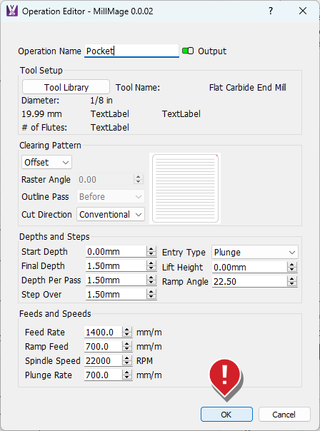 CNC cutting and engraving performance, quality, and speed is highly machine & user-dependent. Beginners are advised to familiarize themselves with their CNC manufacturer user guide and manual prior to using a CNC machine with MillMage.