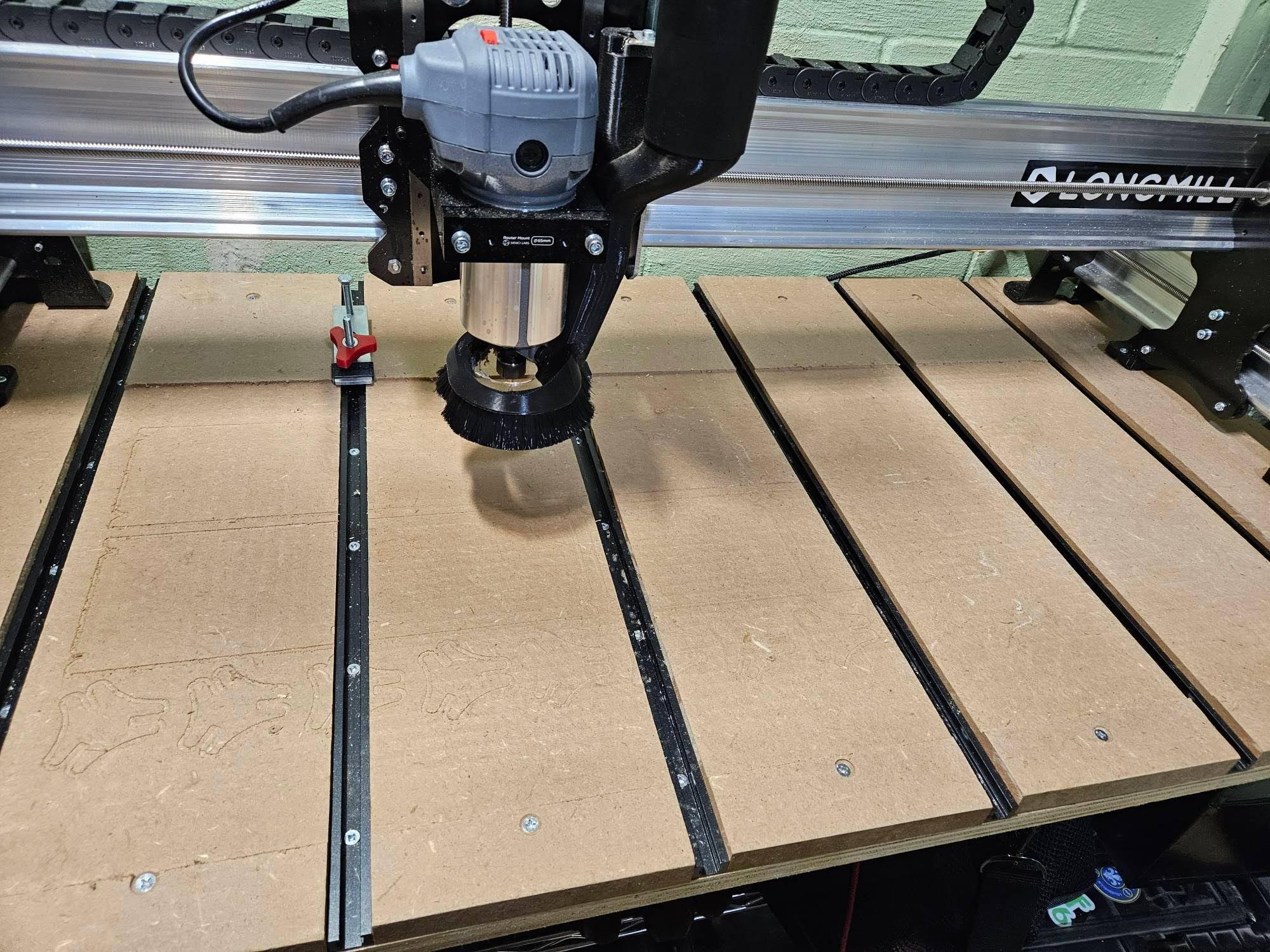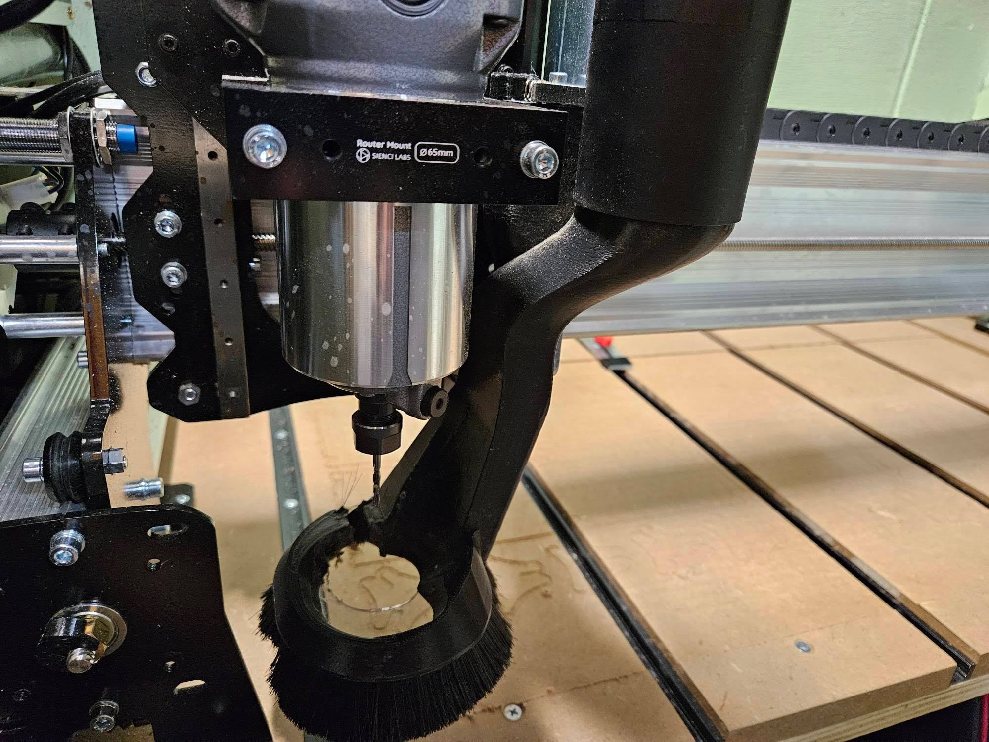 Activate any dust collection, if installed. Activation of dust collection through GCode can be sent using the Console window. Advanced users can employ Custom GCode.