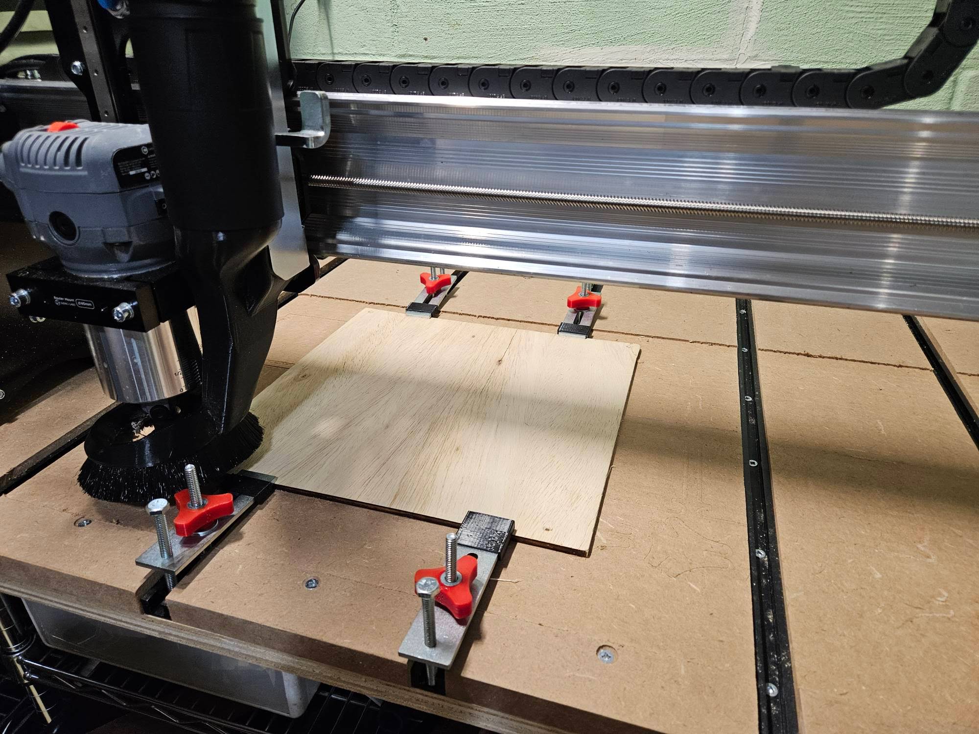 - Machine-specific workholding equipment such as T-track clamps, screws & drivers, and/or adhesives