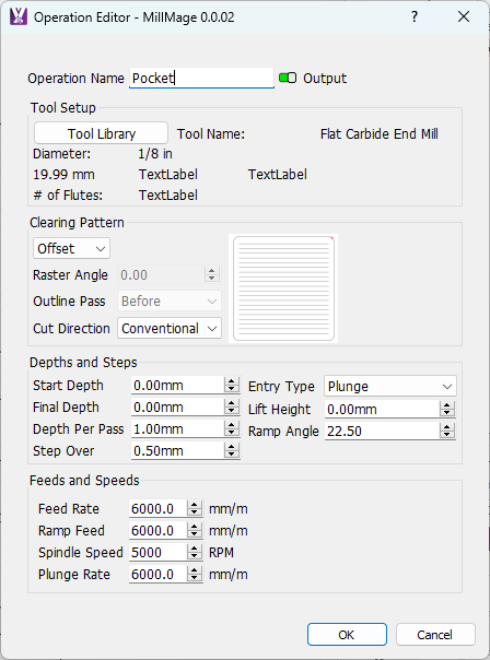 Assign cut operations to each artwork element through the Operation Editor found by default on the far right-hand side of the MillMage interface. The order of operations matters — MillMage will process each operation sequentially from top to bottom when more than one operation is selected.