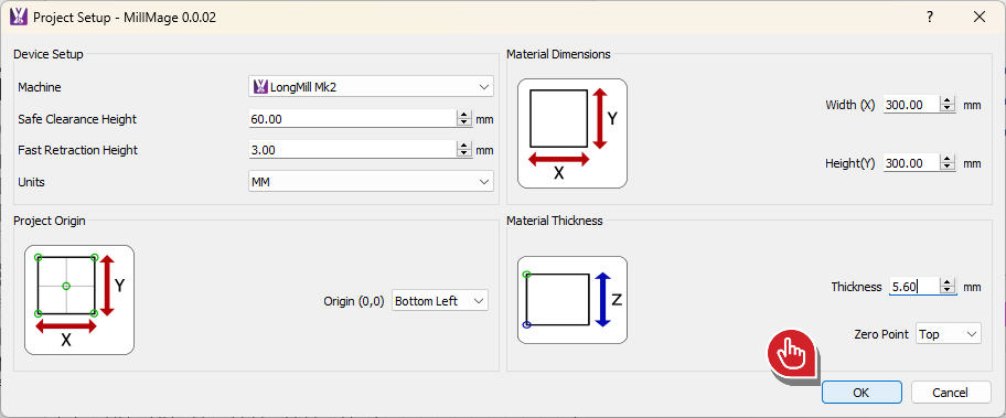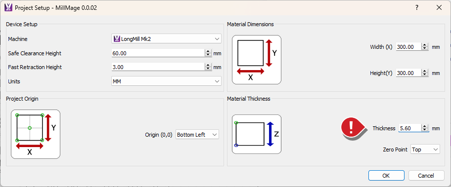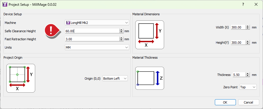 We will update these values later in this guide to match your CNC machine setup. View more details at: Project Setup Window.