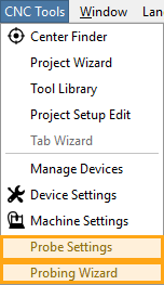 - CNC Tools → Probing Wizard → Manage Probe Configuration