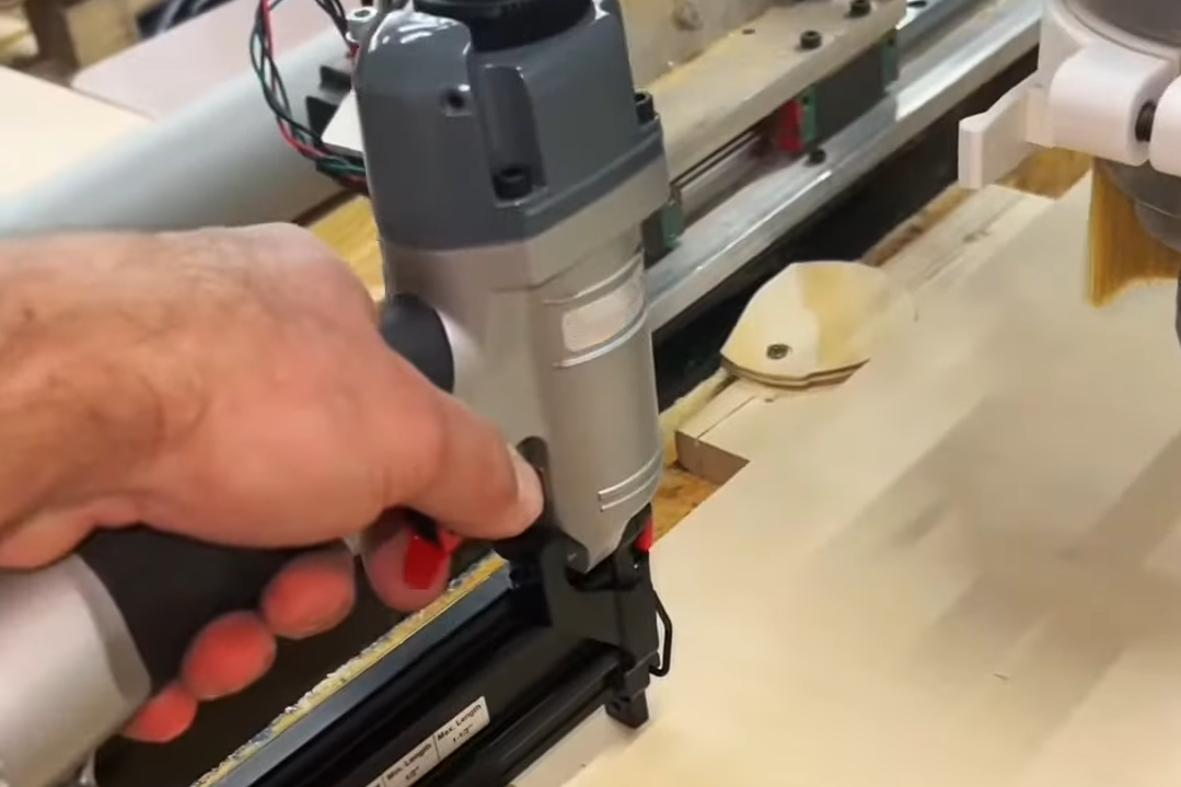Drive plastic, composite, or wooden brads (small pointed fasteners) through the workpiece and into the wasteboard to hold the workpiece in place, similar to the screw down method.