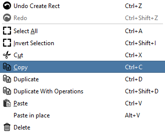 The clipboard commands are accessible in the Edit Menu, Main Toolbar, by hotkey, or by right-clicking in your Workspace to open a context menu.