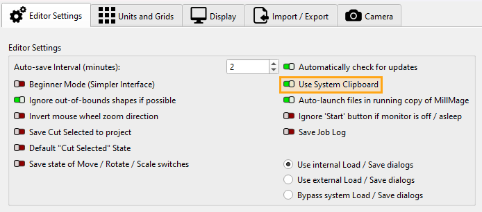 With this setting disabled, you'll no longer be able to copy and paste from other programs into MillMage, or between MillMage windows.
