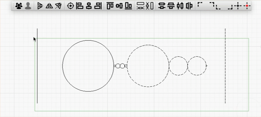 In the Arrange (long) Toolbar, the Distribute tools are each presented individually: