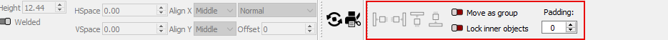 Move as group tells MillMage to treat all selected objects as a single group when Docking them — that means they will all stop when one object in the group hits the edge of another object or the Workspace, and all selected objects will maintain their relative position to one another when they're Docked.