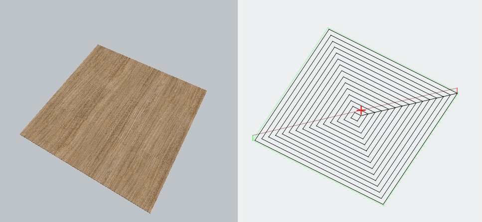 Take care when defining a shape for surfacing operations, as the tool will always start cutting from the outside in, with the center of the tool running along the shape perimiter to begin.