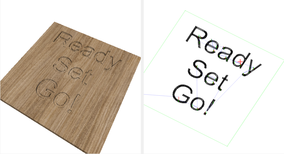 The right side of the Preview window shows a representation of your project as it will be carved in your workpiece, while the left side shows a wireframe representation of toolpaths only.