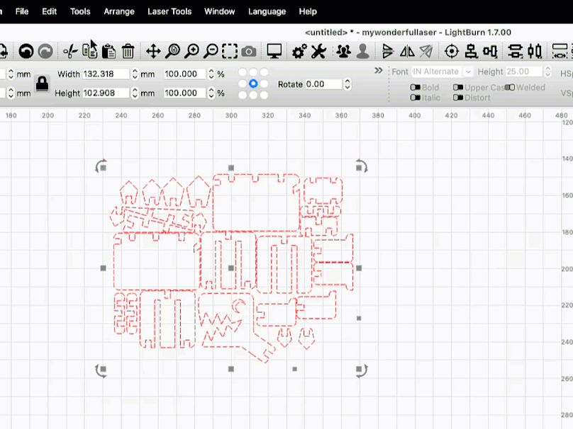 Select Adjust Tab Height to adjust the top/outermost line of tabs. This allows you to keep the interior size of the assembled piece the same, while making it bigger or smaller on the outside.