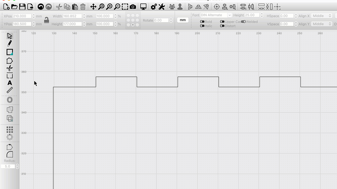 Before opening the Resize Slots tool, you'll need to know the existing length of the lines you want to adjust. Use the Measure tool to read the length of an individual slot or tab.