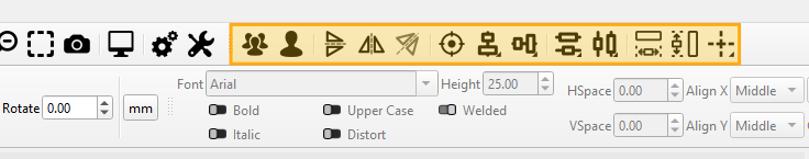 The Arrange Toolbar is located near the center of the top toolbar in MillMage by default, to the right of the Main Toolbar.